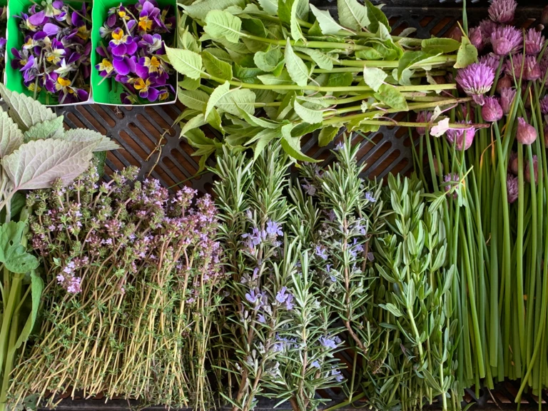 On y cultive aussi des herbes plus rares et surprenantes - shiso, basilic thaï, angélique, guimauve, parfois même gingembre, et bien d’autres - ainsi que des fleurs comestibles (cosmos, mauves…) qui apportent couleur, parfum et finesse. Un vrai paradis pour les chefs, et pour les palais curieux qui aiment voyager.